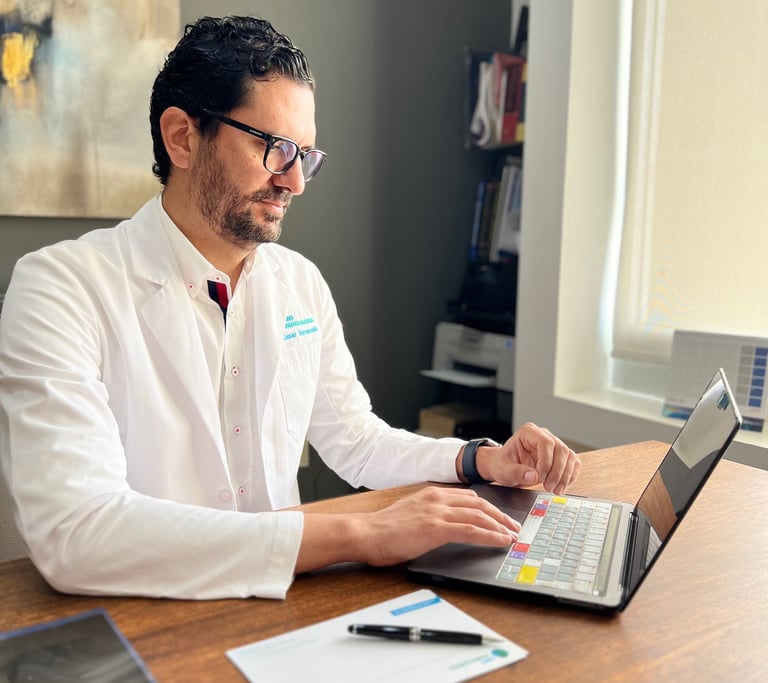Ya sea para resolver alguna duda, revisión de estudios de laboratorio, pedir una opinión sobre tu diagnóstico, conocer nuestras opciones de tratamiento para tu enfermedad o simplemente evitar los tediosos traslados, aprovecha las ventajas de la vida moderna y el descuento por consulta en línea.